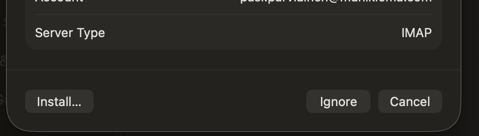 Lopuksi viimeistele asennus painamalla lisätietoja näyttävästä ikkunasta "Install...":
